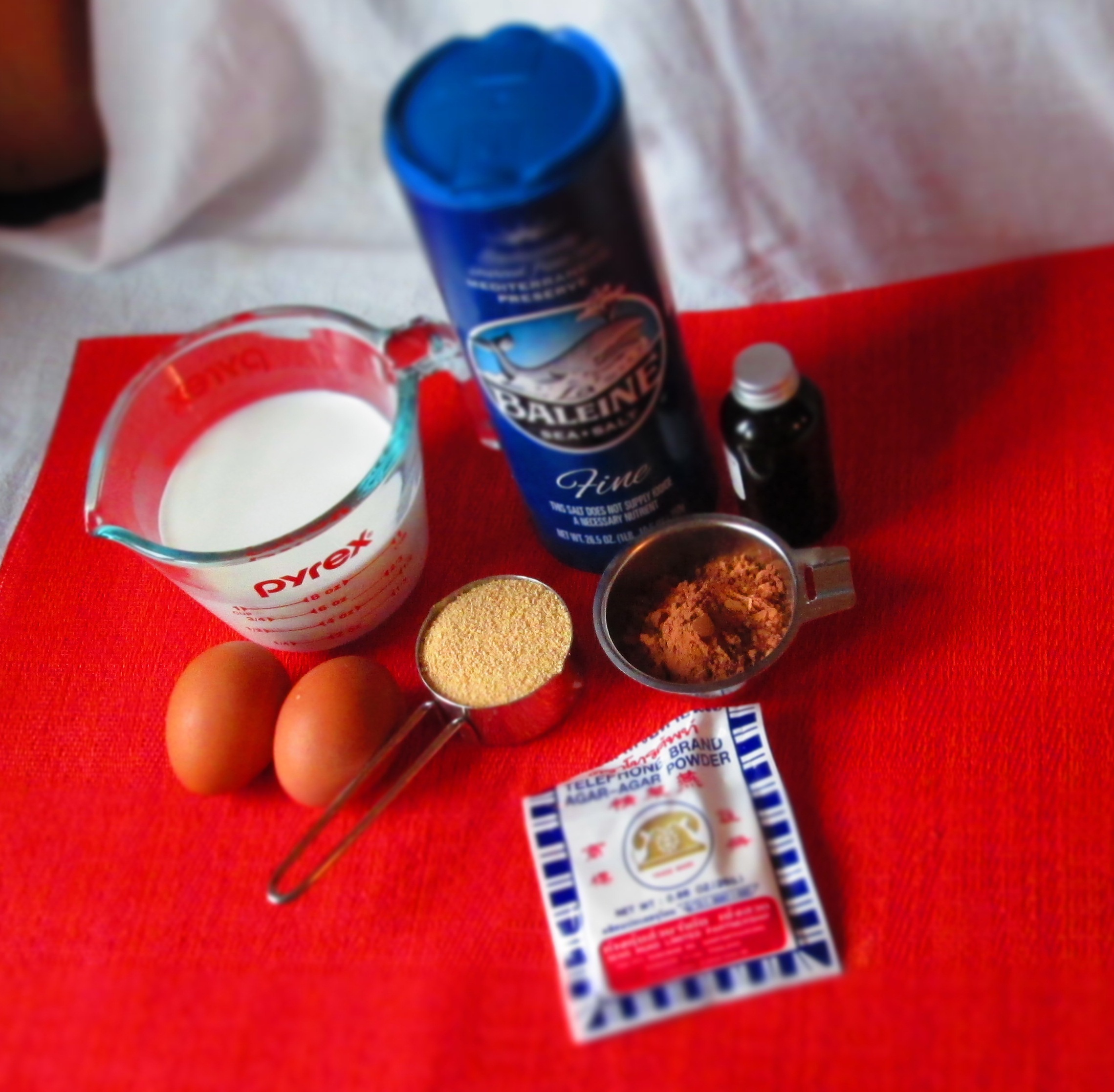 to use agar agar in place of cornstarch, which is meant to both set the pudding and give it a silky texture. Agar agar is derived from algae and acts just like gelatin. But unlike gelatin, which is an animal byproduct, agar agar is completely vegetarian. It was first discovered in Japan, and if you’re familiar with Japanese cuisine, you might know its Japanese name, kanten. Agar agar continues to be a common ingredient in Asian and Southeast Asian cuisine. And because it’s from seaweed, it contains many of the minerals found in seaweed: calcium, iron, and fiber. It’s known to reduce inflammation, help with lung function, and help with digestion and weight loss. It also improves liver function and aids in carrying toxins out of the body. You can get agar agar at Asian markets, health food stores, and online.