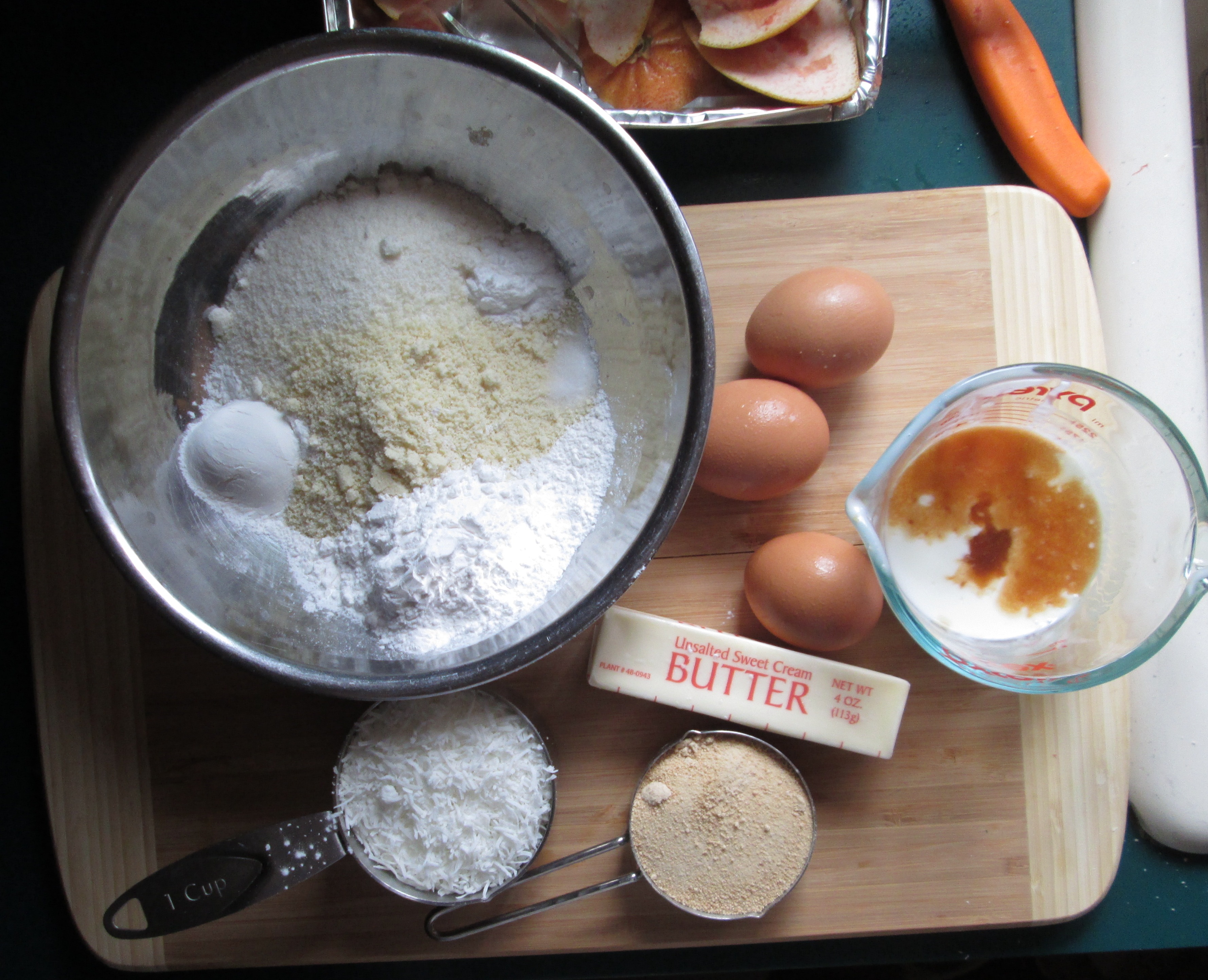 Since this was a last-minute plan, I had to use what I had on hand. Since I always have almond and coconut flours, that was a no-brainer. But to make it a little more special, I used buttermilk for the liquid ingredient. This added a richness and moisture that the usual milks don’t provide.