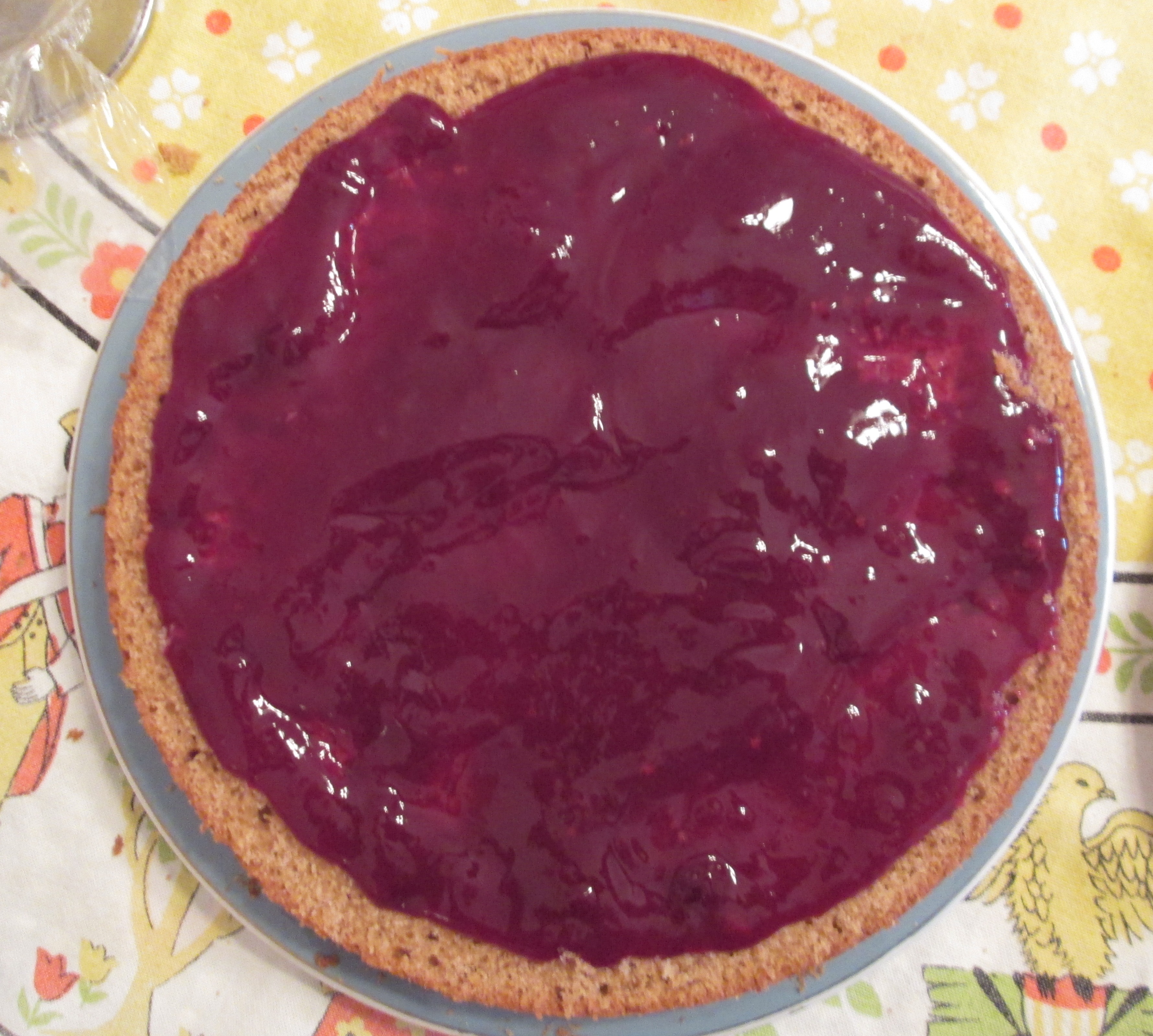 * About the jam―I had no jam in the house at the time, so I had to make do with what I did have. I had received some samples from The Perfect Puree and they were sitting in the freezer, waiting to be used. I had multiple samples but they were all different flavors, and they were all only 2 ounces—hardly enough to fill the middle of a cake.