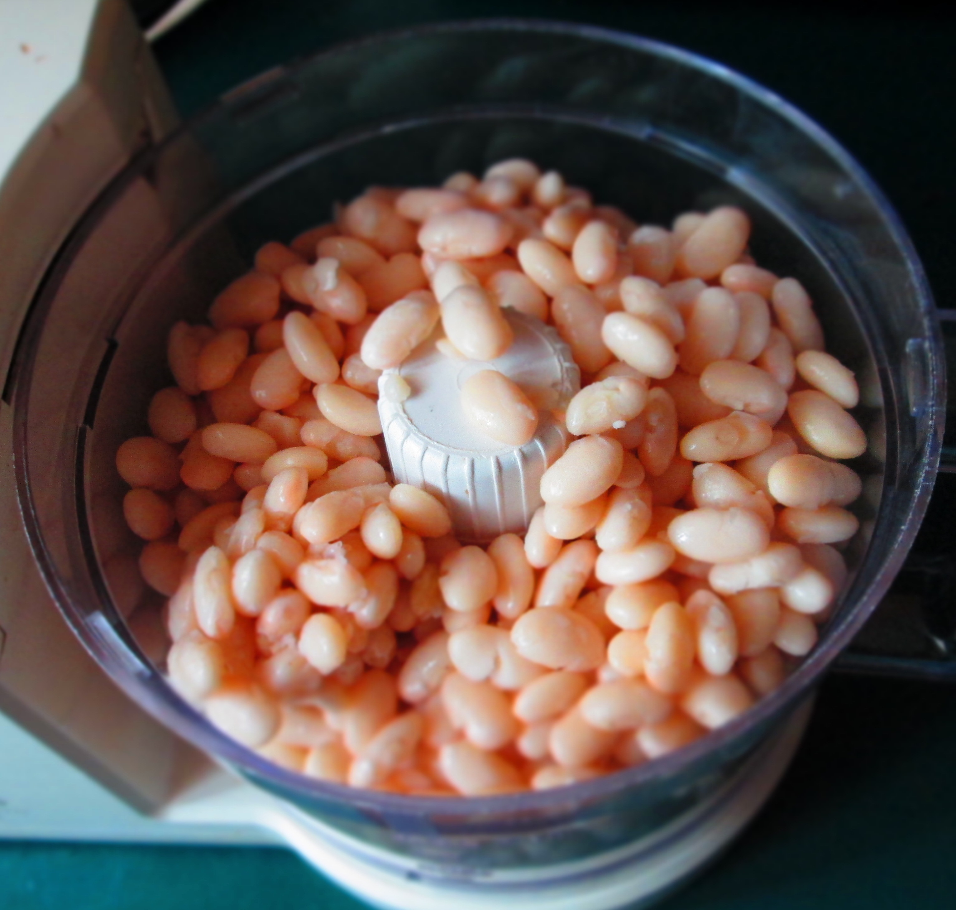 Place the beans in a food processor and pulse a few times (just to break up the beans a bit).