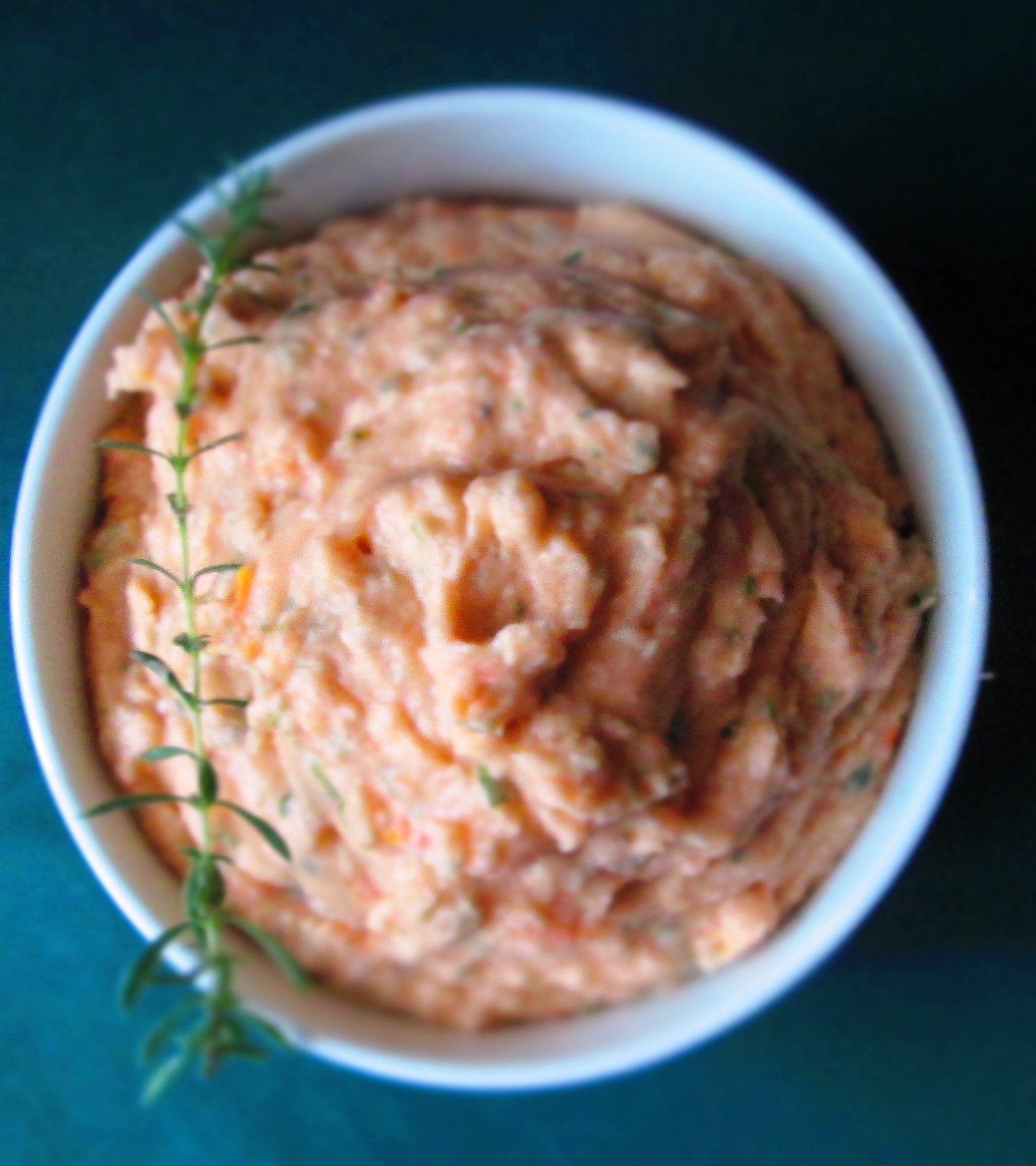 Spoon the spread into a bowl, garnish it if you like, and serve at room temperature.