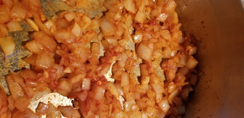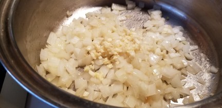 Heat the oil in a large Dutch oven or pot. Add the onion and a pinch of salt. Saute until soft and translucent, about 5 minutes. Add the garlic and sauté until fragrant, another minute.