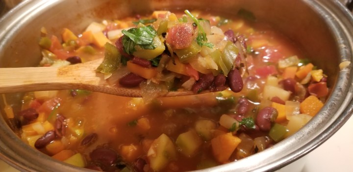 There are so many ways to make a vegetarian chili. Some people, of course, will argue and say that unless there’s meat in it, it can’t be chili, that it’s just a vegetable stew. Whatever. If it tastes like chili, then it’s chili. Or call it vegetable stew. It doesn’t really matter, as long as it tastes good. And this dish does.
