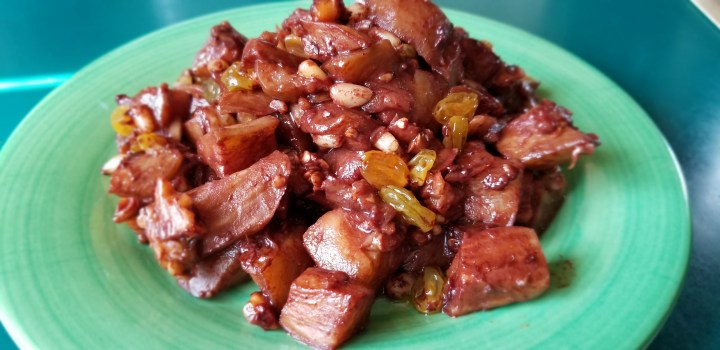 I didn’t know what to expect from this recipe. In the end, I was pleasantly surprised. It was slightly bitter, slightly sweet, and much more flavorful than I had anticipated. And more complex. A thousand flavors indeed. The ingredients are pretty basic, but combined, they really made for an unusual, delicious dish. It was deeply colored, very rich looking and unctuous. I would serve this hot by itself, or at room temperature on crackers.