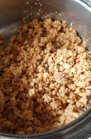 First, I cheated. The recipe gives ingredients and instructions for making fresh cavatelli. Making fresh pasta is not difficult, but it does require time, which is something I’m in short supply of. So, I took the easy way out and used dry pasta. That was alteration number one.