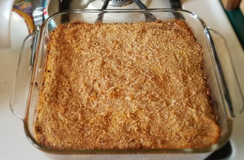 Transfer the squash into the casserole. Spread it out evenly and smooth out the top. Spread the remaining bread crumbs evenly over the top, then drizzle the butter over the bread crumbs.