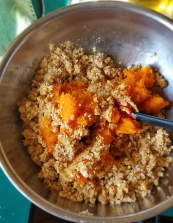 Today, we’re in Lombardia and I’m offering one of that region’s specialties, squash cake. Although it’s called cake, it’s actually more like a savory loaf with a sweet edge, kind of like corn bread.