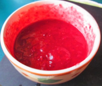 There are many things you can do with leftover cranberry sauce. One way to use it up is to make a dressing with it, and I’ve done just that. I paired homemade cranberry sauce here with baby greens and Anjou pears. So that the cranberry doesn’t overwhelm the delicate ingredients, I strained the dressing.