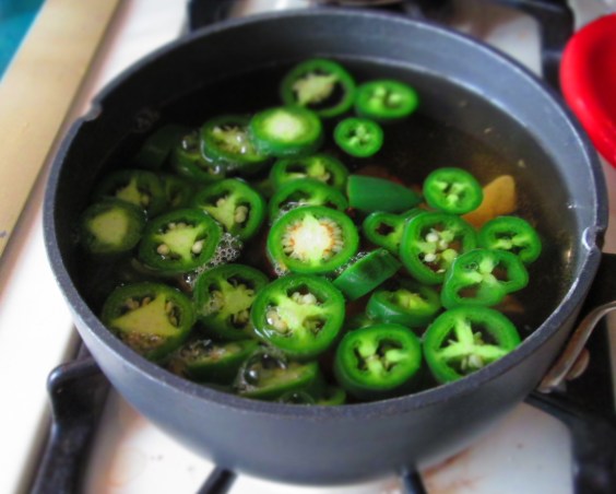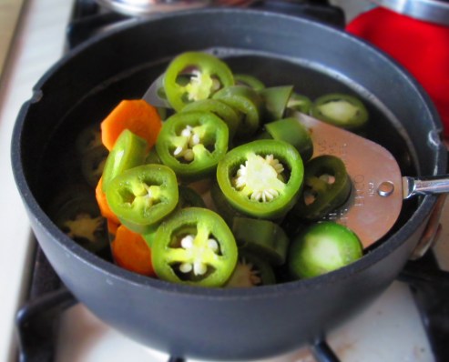 With a slotted spoon, transfer the jalapenos and carrot to a clean jar with a tight-fitting lid.