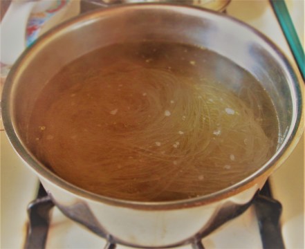 Meanwhile, place the lischi (or chives) in another pot and cover with water. Bring it to a boil; lower the heat and simmer until the the vegetables are tender, about 3 to 5 minutes. Drain well.