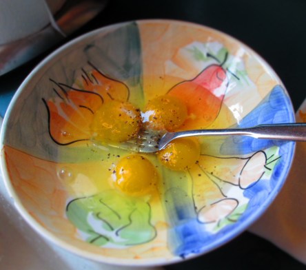 Beat the eggs together with the salt and pepper.