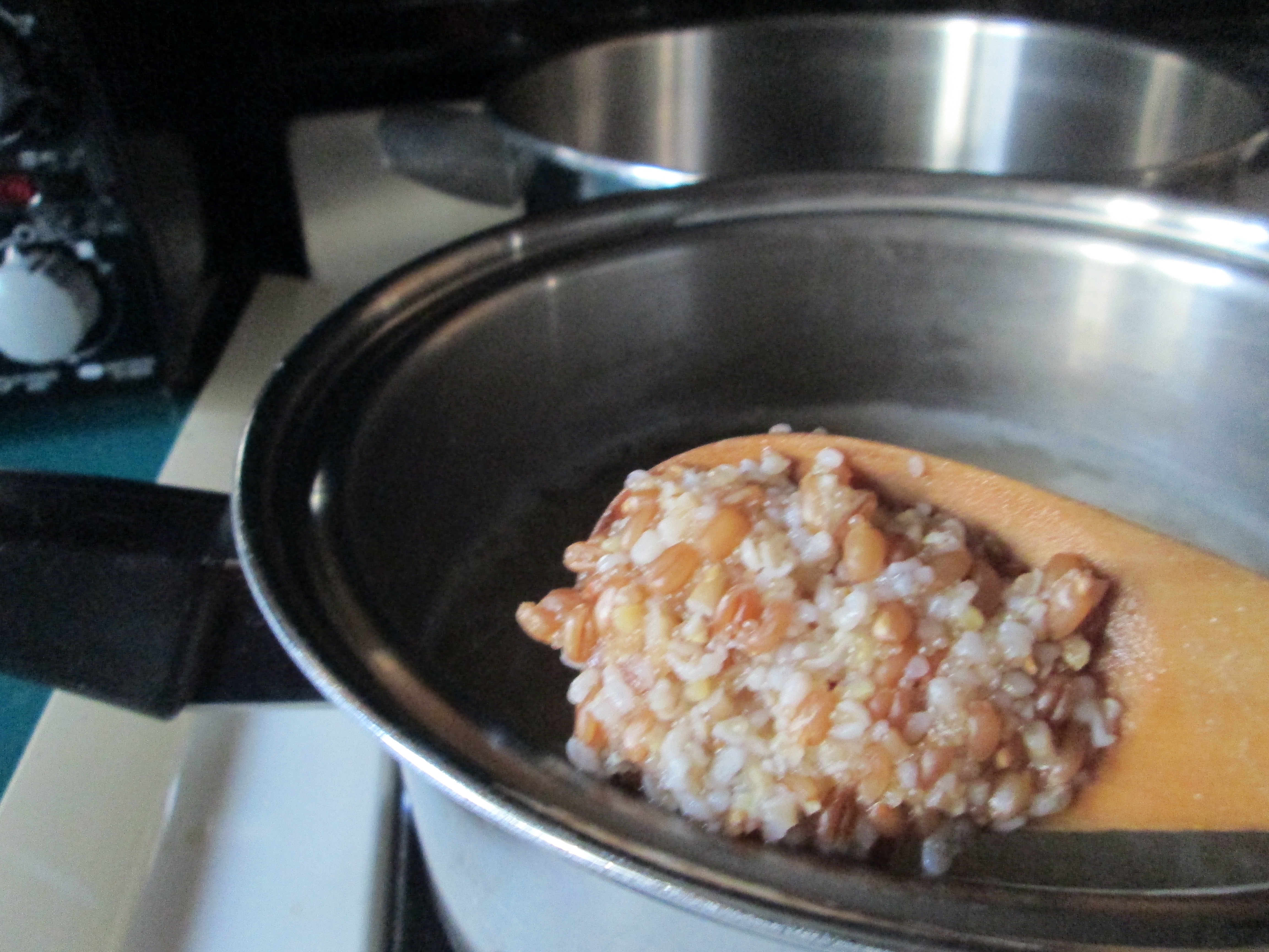 So, here’s my impromptu recipe for Kale-Bean Soup with Amaranth. These are approximate amounts, so use however much you like of anything. Soup is very forgiving where quantities of ingredients are concerned. Enjoy.