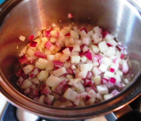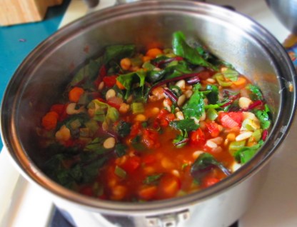 Add the beans and farro and stir. Add about ½ cup of the cooking liquid and stir. Cook 20 minutes to combine the flavors. You can add more bean cooking liquid as needed if the pot dries out, or if you want a looser consistency.
