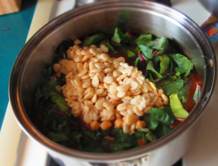 Bring to a boil; lower the heat and simmer until tender (each one will vary in time). When tender, drain each legume and farro and reserve some of their cooking liquid (you can use liquid from one pot or combine them).