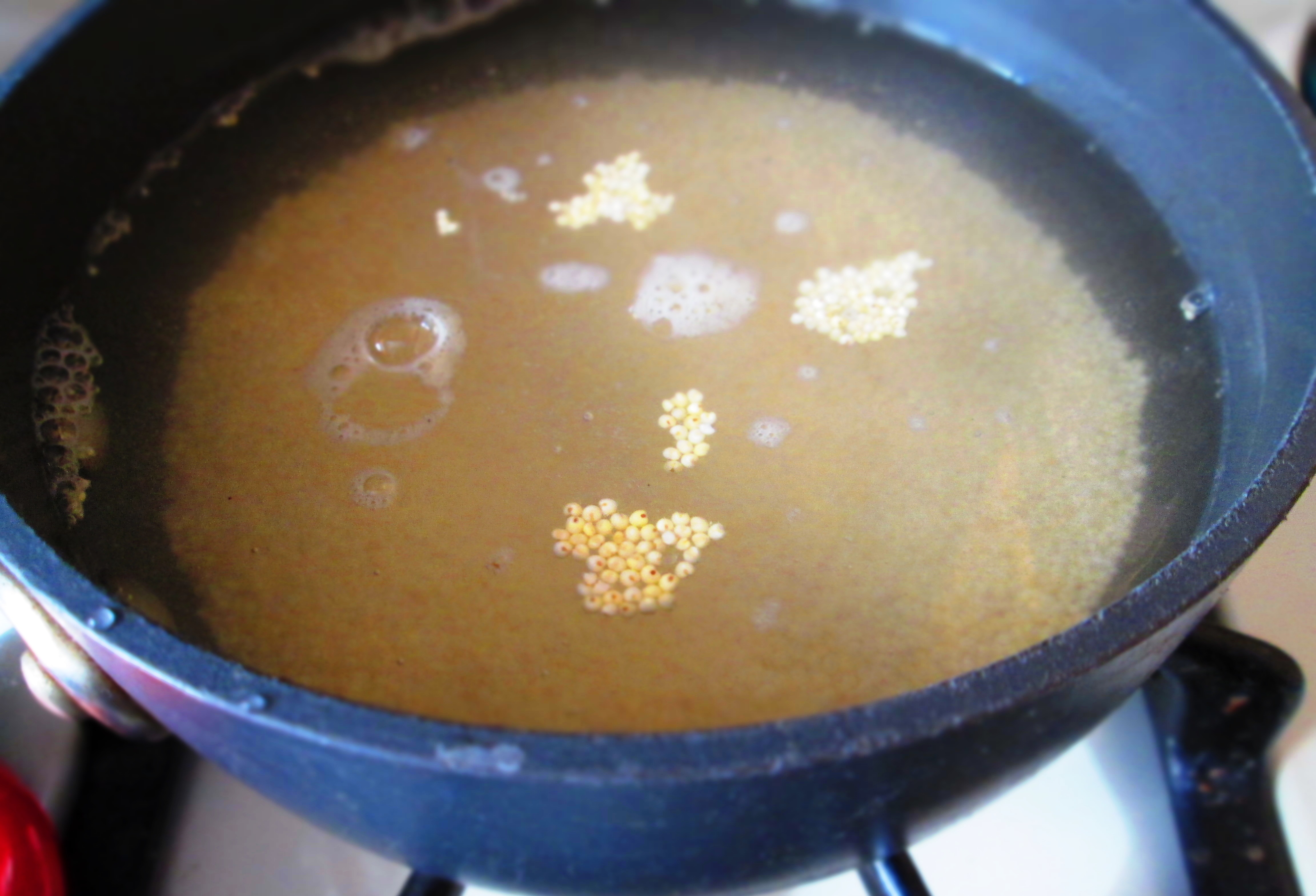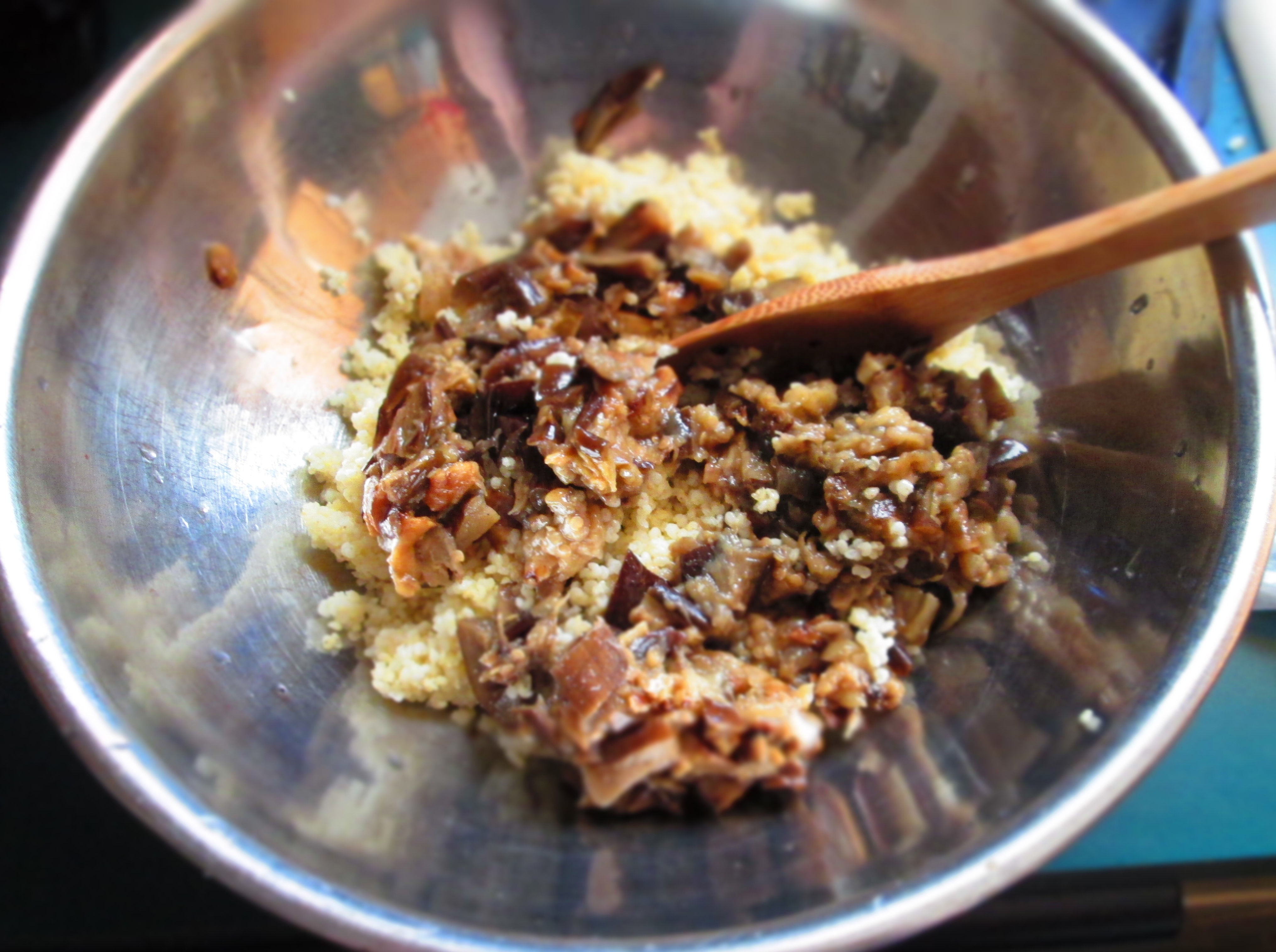 Since I will assume that you don’t just happen to have roasted eggplant slices already in the fridge, or perhaps not even millet in your pantry (even if you do, I doubt you’d have both at the same time), I’ve written this recipe so that you can start from scratch. Btu it’s a very easy recipe—you can even make the eggplant a few days in advance so that you can just jump right into this recipe.