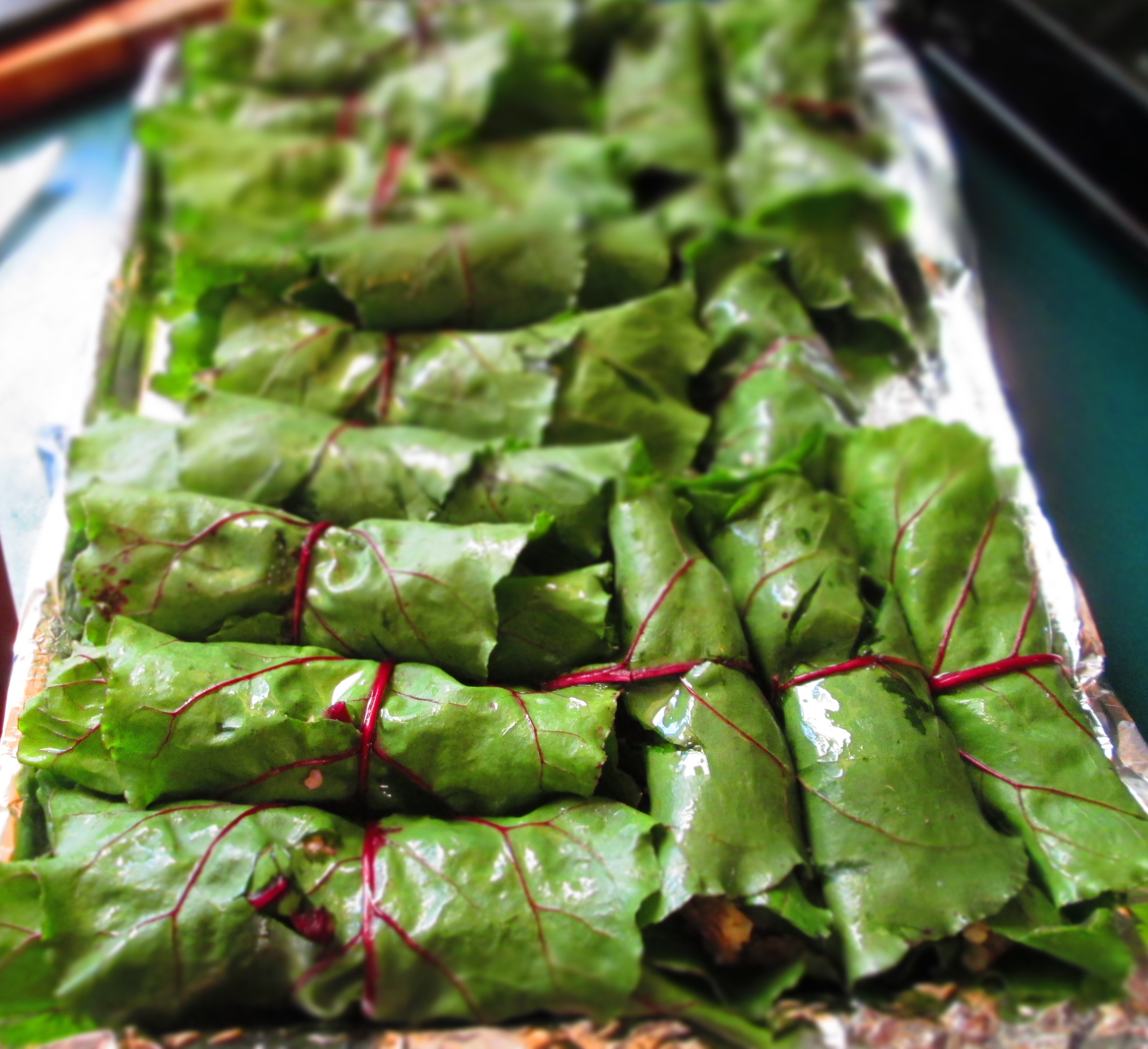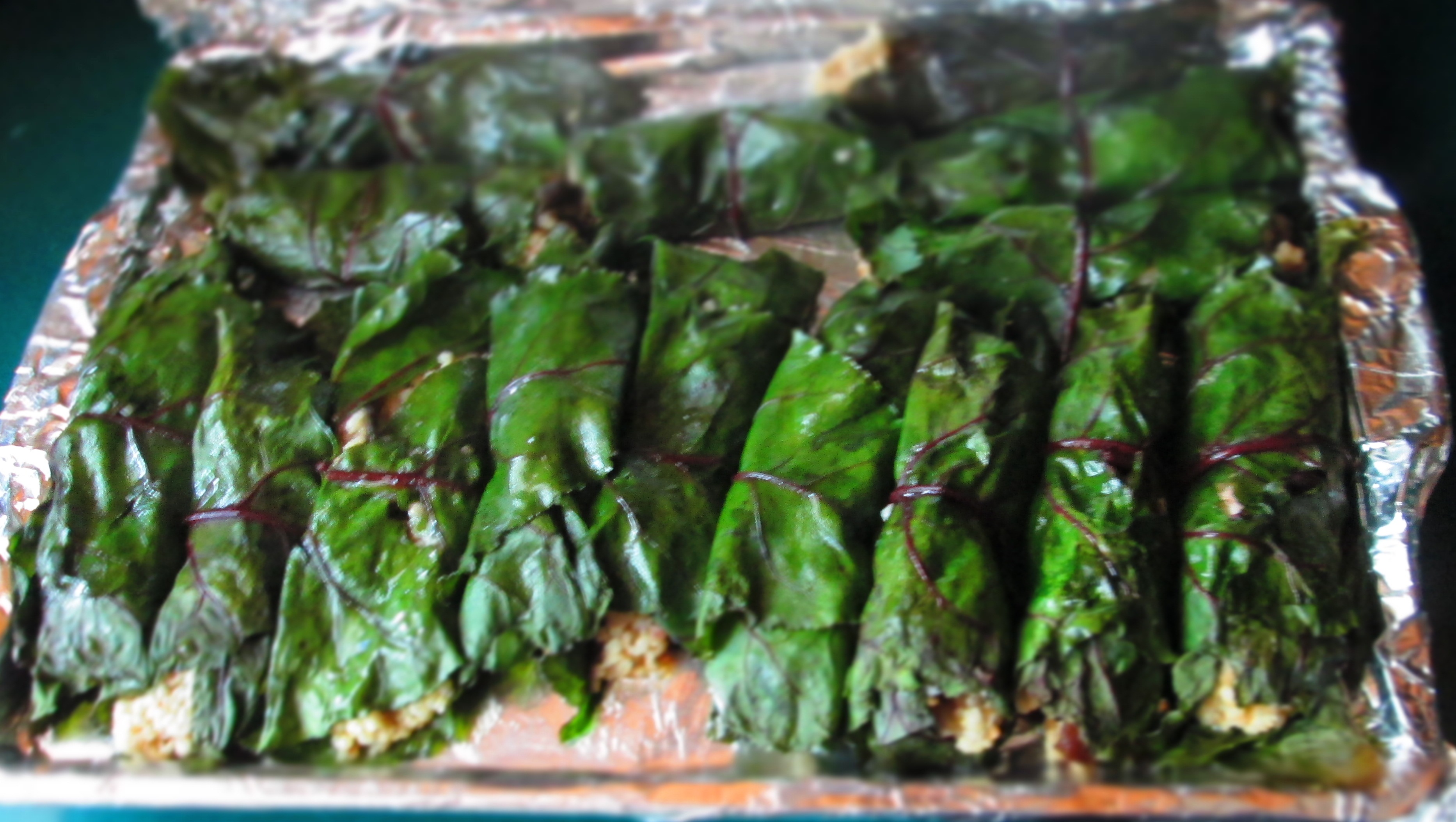 Beet Green Rolls Stuffed with Millet and Eggplant