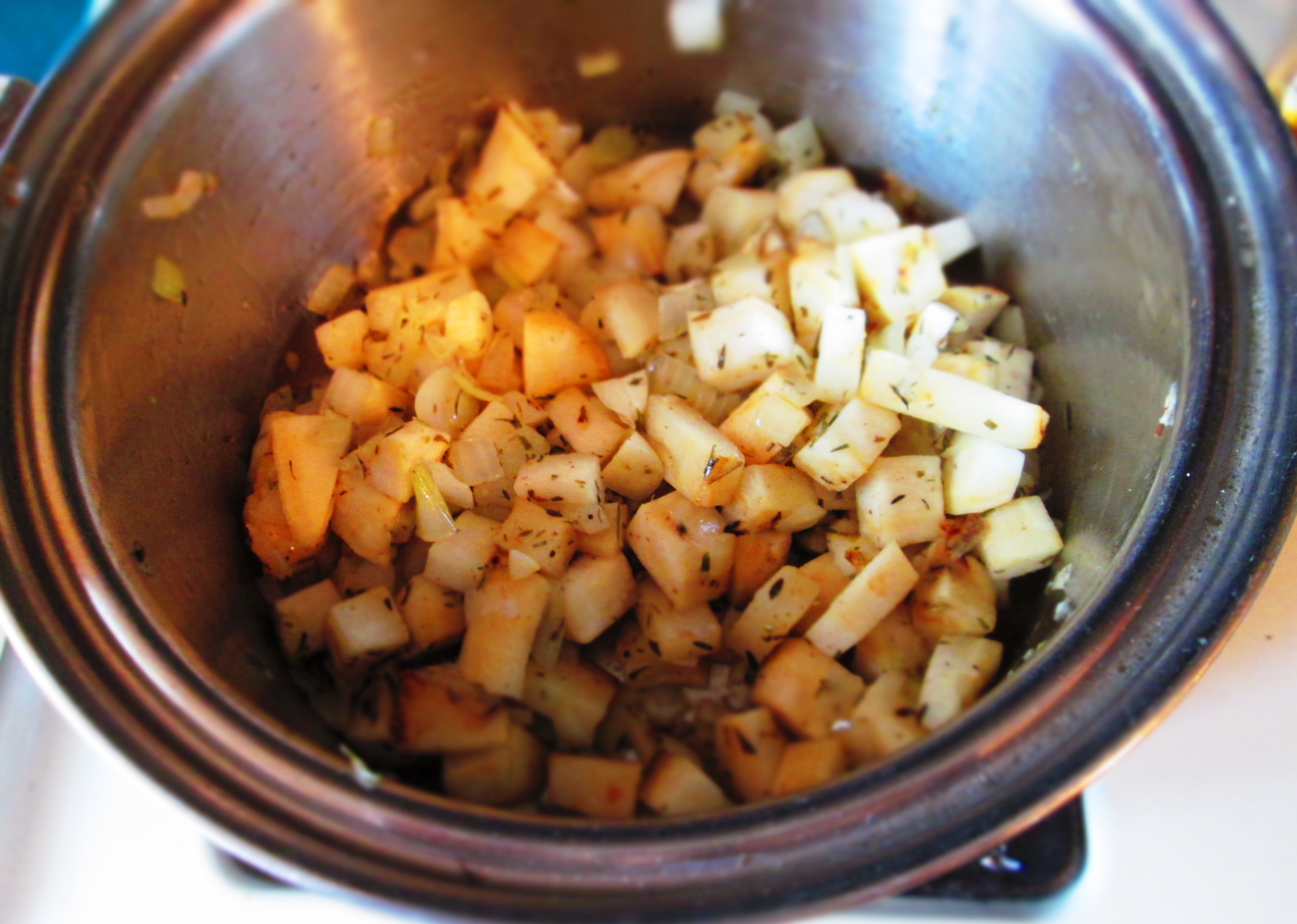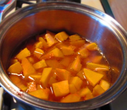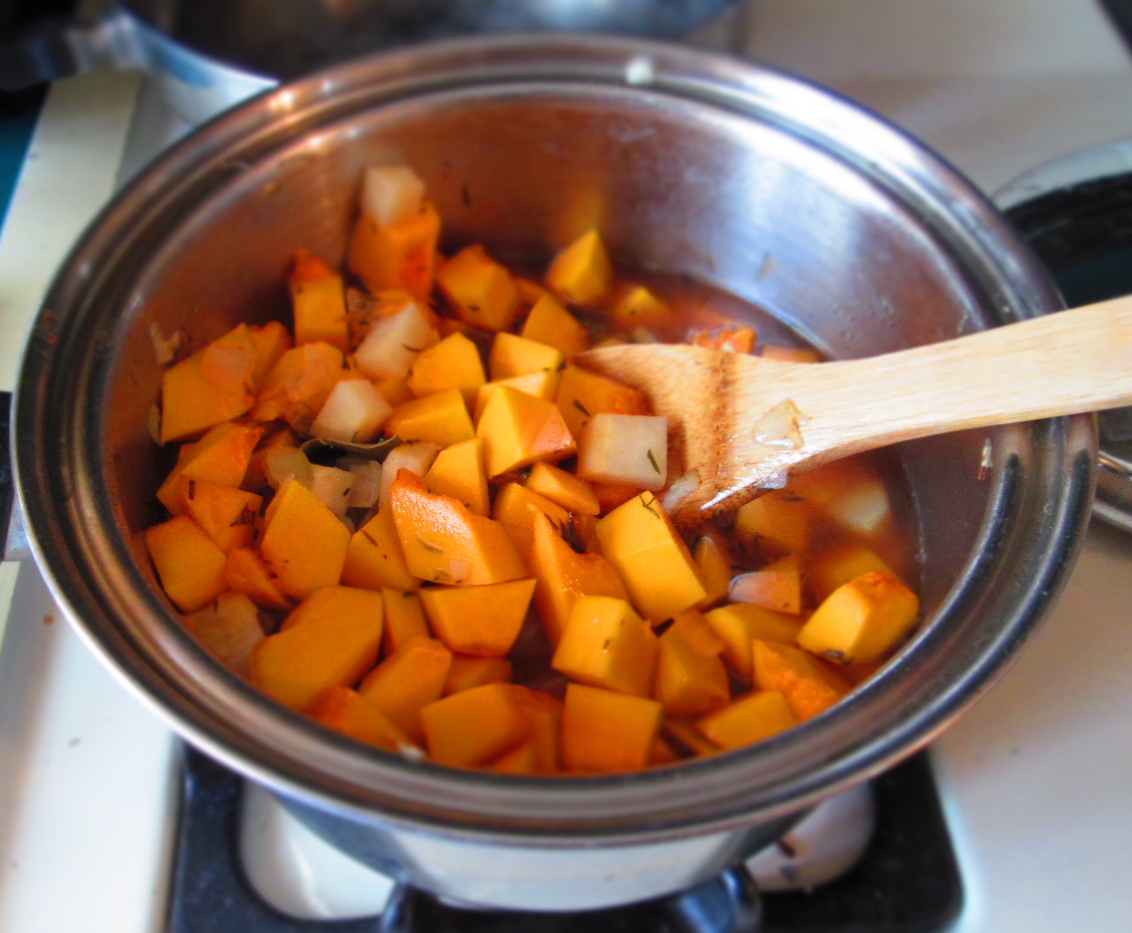 Pour in the broth. Bring to a boil. Lower the heat to medium-low and simmer until the squash is tender, about 20 minutes.