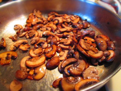 Heat the remaining oil in a medium skillet. Add the mushrooms and remaining salt. Sauté over medium-high heat until the mushrooms are golden brown, about 20 to 25 minutes. They will release water after about 6 or 7 minutes; after the liquid evaporates, the mushrooms will begin to brown.