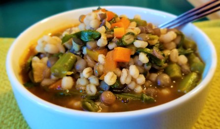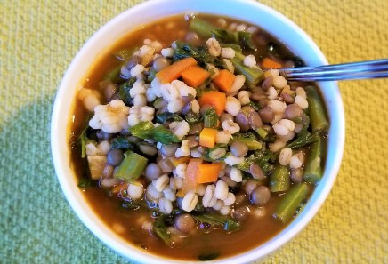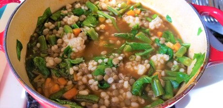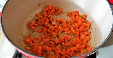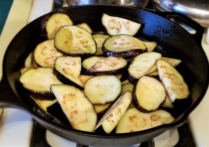 Mix in the eggplant. Add the garlic and continue sautéing another minute. If the bottom of the pot looks like it’s burning, add a little liquid (water, broth, wine) and scrape the browned bits up.