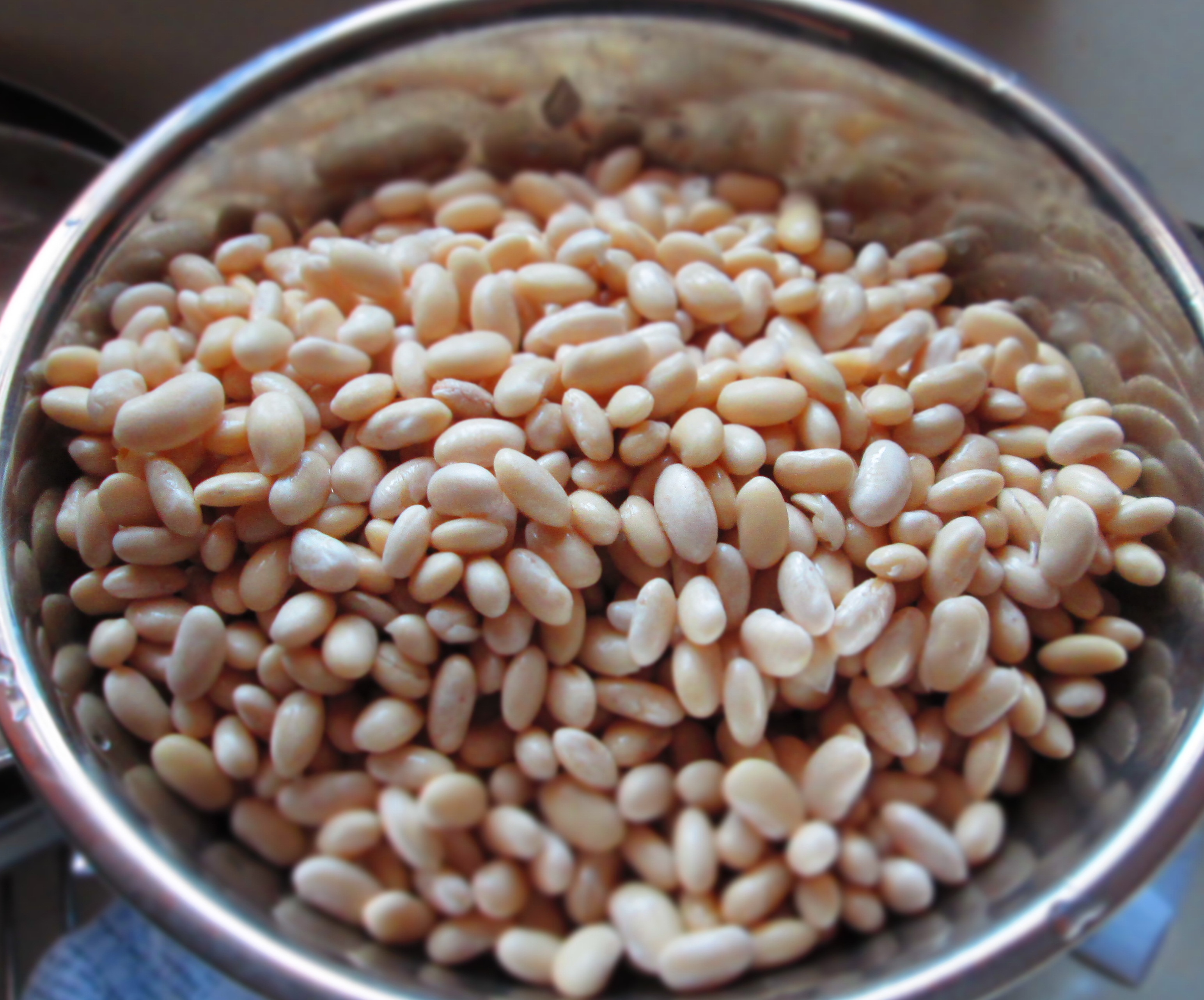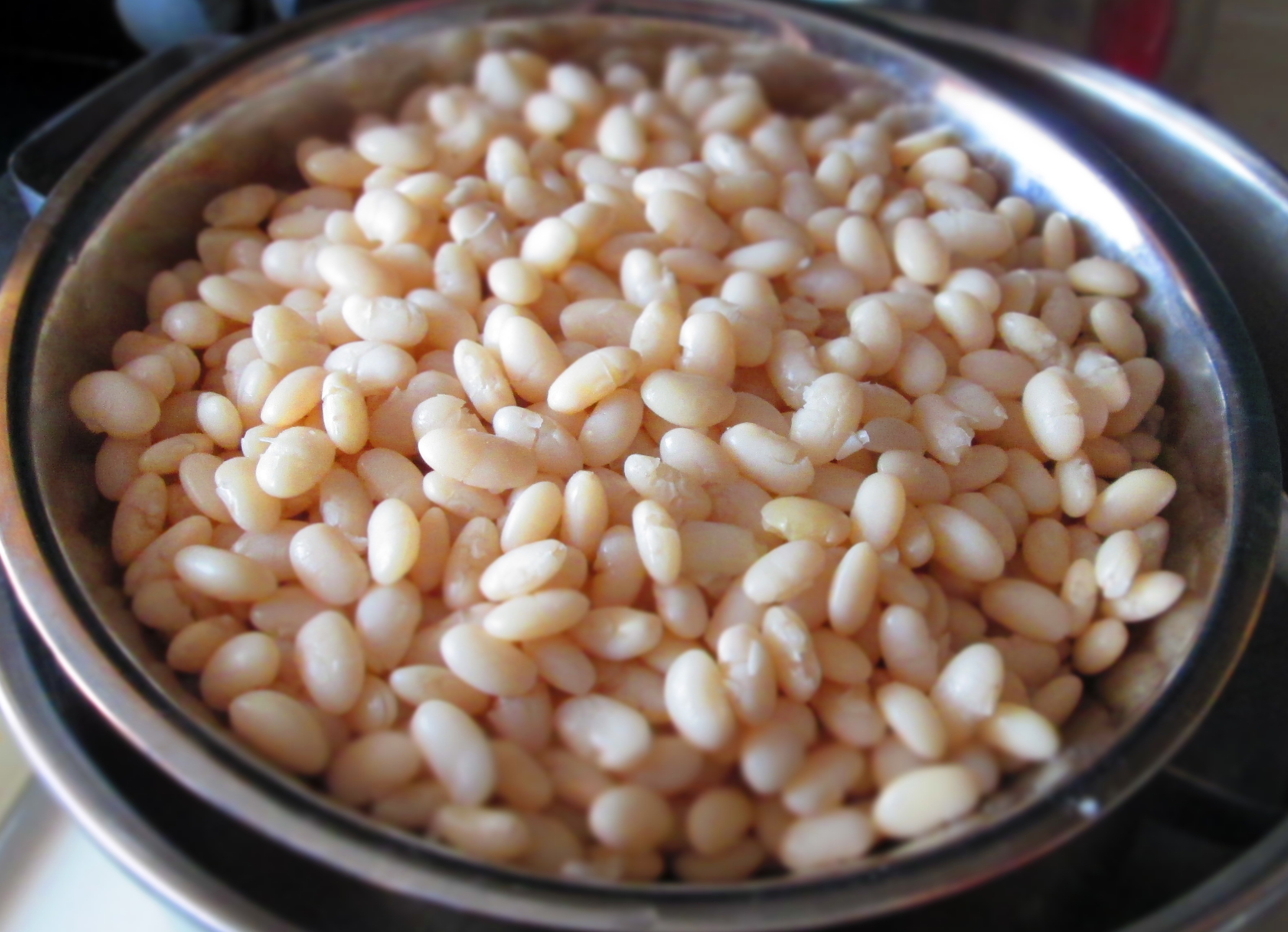 So, I cooked up a mess of Great Northern beans, added some fresh tomatoes from my mother’s garden, and got this: tomato-y white beans. It’s really simple, so I hope you give it a try.