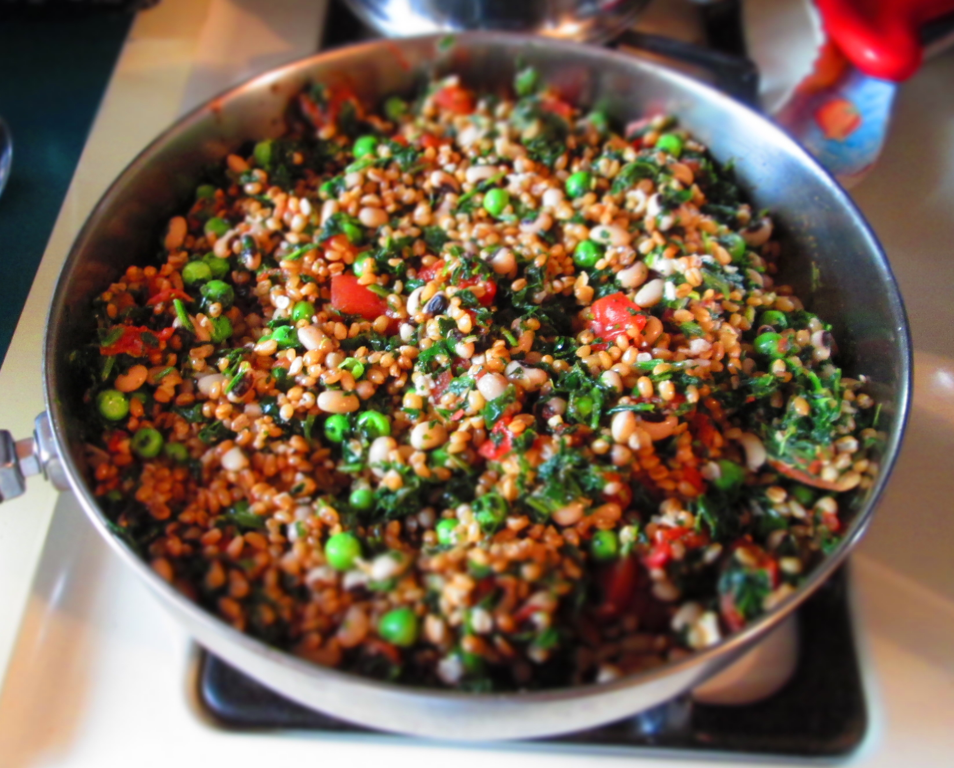 Warm Black-eyed Pea-Spinach Wheat Berry Salad